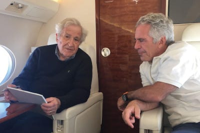 Noam Chomsky (left) and Jeffrey Epstein (U.S. Department of Justice)